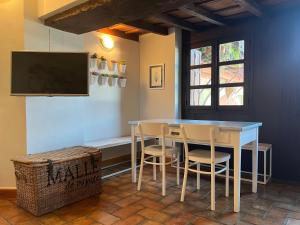 Zusätzliche Annehmlichkeiten umfassen Wascheinrichtungen wie Waschmaschine und Wäschetrocknergestell. Die Küche ist komplett ausgestattet mit Herdplatte, Kühlschrank, Mikrowelle, Kaffeemaschine, Toaster, Wasserkocher sowie dem notwendigen Kochgeschirr und einem Esstisch. Den Gästen steht zudem eine Gepäckaufbewahrung sowie ein Tourenschalter während des Aufenthalts zur Verfügung.