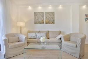 Im Apartment stehen den Gästen drei Schlafzimmer mit insgesamt fünf Betten sowie zwei Badezimmer mit ebenerdigen Duschen ohne Stufen zur Verfügung. Die voll ausgestattete Küche verfügt über moderne Geräte wie Backofen, Herdplatte, Geschirrspüler, Mikrowelle, Kühlschrank und Kaffeemaschine sowie Tee- und Kaffeezubereitungsmöglichkeiten. Ein Esstisch lädt zu Mahlzeiten zu Hause ein. Zusätzliche Annehmlichkeiten umfassen schallisolierte Räume, Heizung und Klimaanlage sowie Bügeleisen mit Bügelbrett und Hosenpresse.