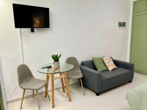 Die Unterkunft besteht aus einem Studio mit einem Bett, individuell regulierbarer Klimaanlage, Heizung, Fliesenboden und einem Sitzbereich mit Sofa. Die voll ausgestattete Kochnische beinhaltet Kochutensilien, Mikrowelle, Kühlschrank, Toaster, Kaffeemaschine sowie Tee- und Kaffeezubereitungsmöglichkeiten sowie einen Esstisch. Eine Waschmaschine steht den Gästen ebenfalls zur Verfügung.