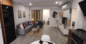 Die Unterkunft besteht aus einem separaten Schlafzimmer und einem Wohnzimmer mit insgesamt zwei Betten. Eine voll ausgestattete Küche steht zur Verfügung und umfasst unter anderem Backofen, Mikrowelle, Geschirrspüler, Kaffeemaschine, Toaster sowie Küchenutensilien und einen Esstisch für Mahlzeiten. Weitere Ausstattungsmerkmale sind Klimaanlage, Heizung, Fliesenboden, Schlafsofa mit Sitzbereich sowie Kleiderschrank und allergikerfreundliche Kissen ohne Daunenfüllung.